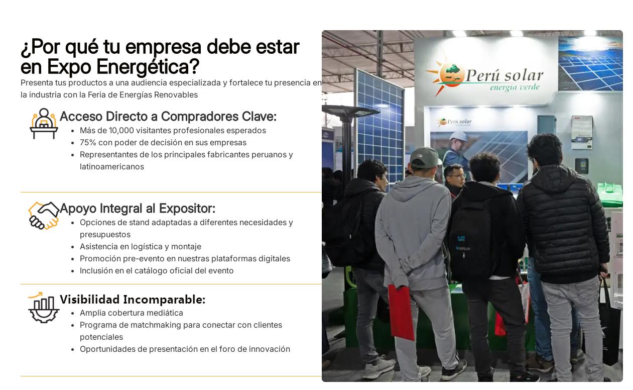 展会介绍:秘鲁国际电力及能源展览会由秘鲁品牌活动策划机构MKTBS主办,已成功举办11届,是秘鲁最大最专业的电力能源展览之一,也是秘鲁最重要的工业活动之一,该展会重点围绕能源行业的内容创新和产品展示,参展范围涵盖电力及能源产业链的设备、材料、产品和服务等多元项目和最新趋势,是向秘鲁及拉美市场展示独家产品和服务领先平台。